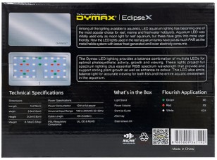 The Dymax EclipseX LED light provides a balanced combination of multiple LEDs for optimal photosynthetic activity, plant growth and viewing. These lights provide full-spectrum lighting plus essential green and red spectral wavelengths that promote and support strong plant growth as well as enhance plant colour. This light also emits balanced light for accurate viewing of fish and other aquatic animals in the aquarium. What’s in the Box? Light Stand Power Adapter Start-Up Guide Allen Key Steel screws x4 Length: 7Â inch / 18cm Width: 3.9Â inch / 10cm Height: 0.3Â inch / 0.8cm Weighting 0.32kg Power Specifications: Power consumption: 12W at full power Universal input range: 100 to 240VAC 50-60Hz Cable Length: 10ft (3.048m) PSU Regulatory Compliance: UL, CE & RpHS LEDs: 6x Green, 8x Red, 24x White Low Heat Energy Saving Improved upgrade Popular choice Equal amount of PRA