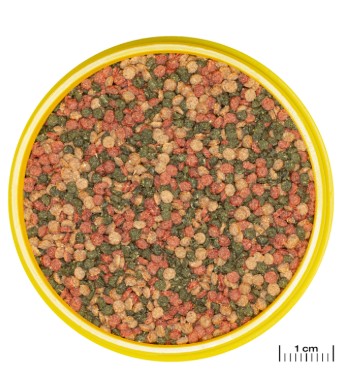 A top performance diet High in protein and energy Ideal for in-store feeding of freshwater ornamental fish.Highly digestible ingredients result in minimal pollution of the filtration systems and thus contribute to a more stable environment.With fresh garlic, immunostimulants and a high level of vitamin C to boost recovery and improve stress resistance.A blend of various carotenoids will contribute to the enhancement of the fish’s vivid colors. Rich in highly unsaturated fatty acids (HUFA). Also easily accepted by newly acquired wild caught fish