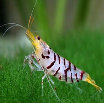 Caridina mariae, commonly known as the tiger shrimp, is a variety of freshwater shrimp from Southeast Asia (neighboring counties of Yingde and Conghua, Guangdong Province, Southern China and Hong Kong SAR). Tiger shrimp have, like their name says, tiger stripes over their body.