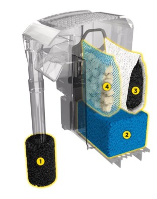 - Patented refiltration system prolongs media contact time for a cleaner, healthier and more biologically stable aquarium